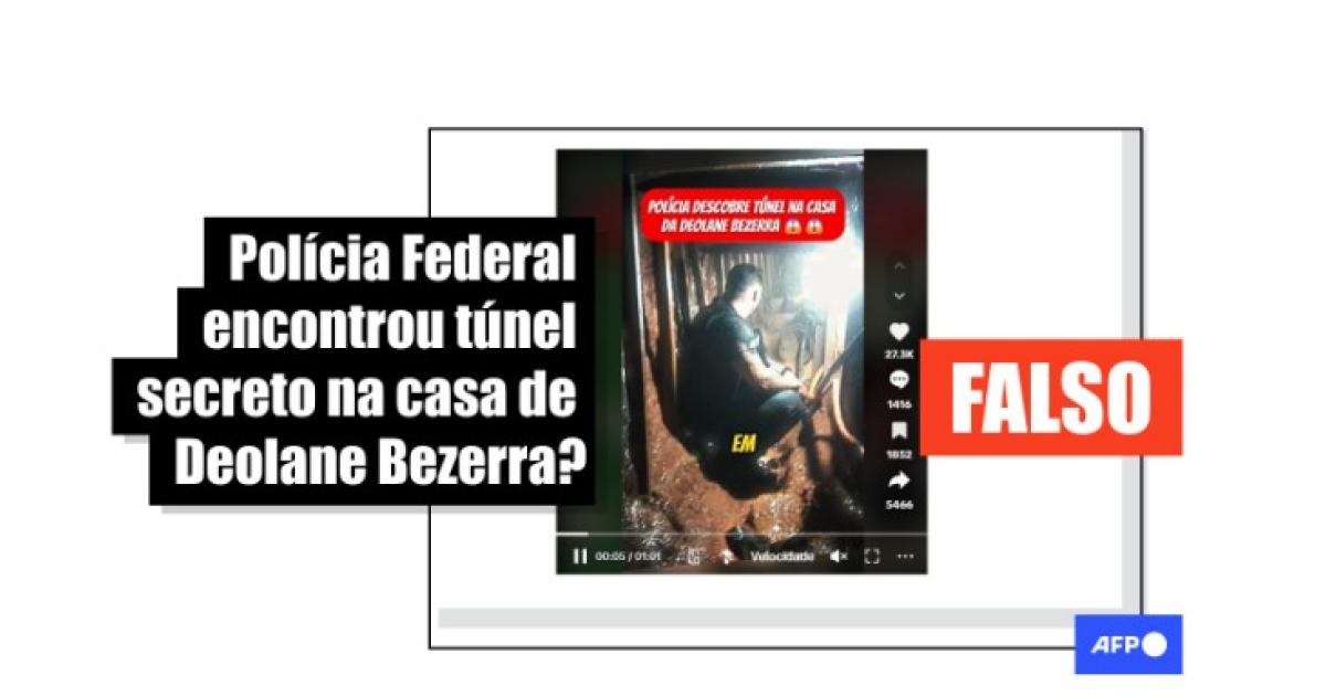 Na sequência, um narrador diz: “A Polícia Federal encontrou nessa manhã um túnel na casa da advogada Deolane Bezerra em São Paulo. (...) Ao investigar, os agentes se depararam com um cofre escondido em um compartimento secreto contendo milhões de reais em dinheiro vivo”.