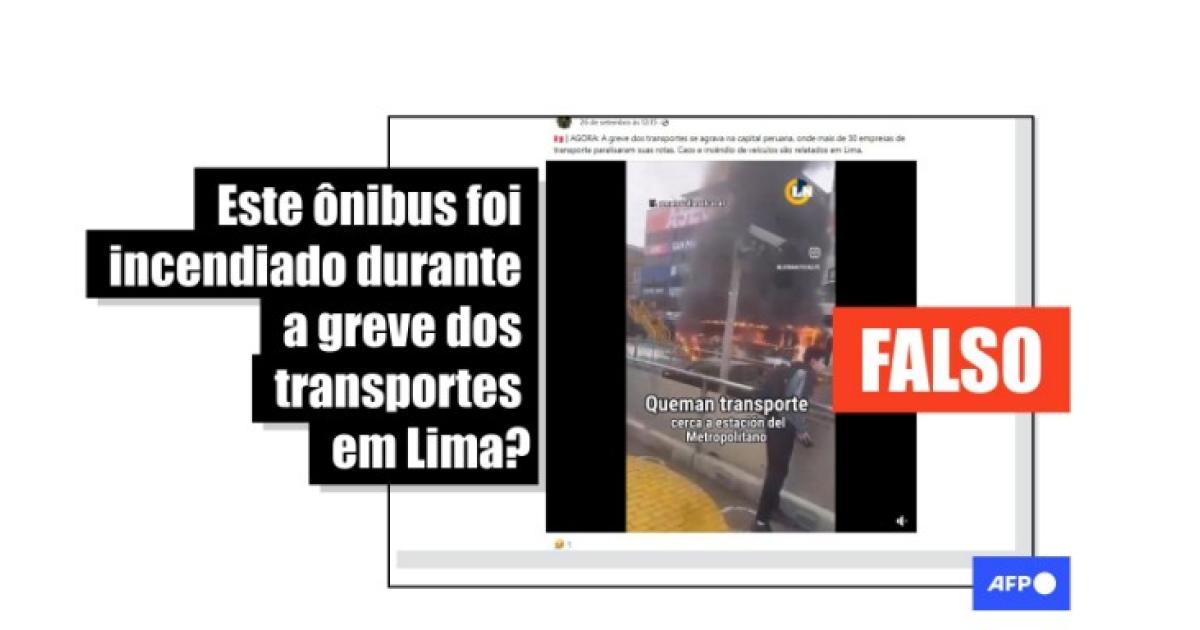 Apesar de terem sido reportados atos de vandalismo contra alguns veículos que estavam trabalhando em sua rota habitual, o vídeo viralizado de um ônibus em chamas em Lima não tem relação com a greve de setembro.
