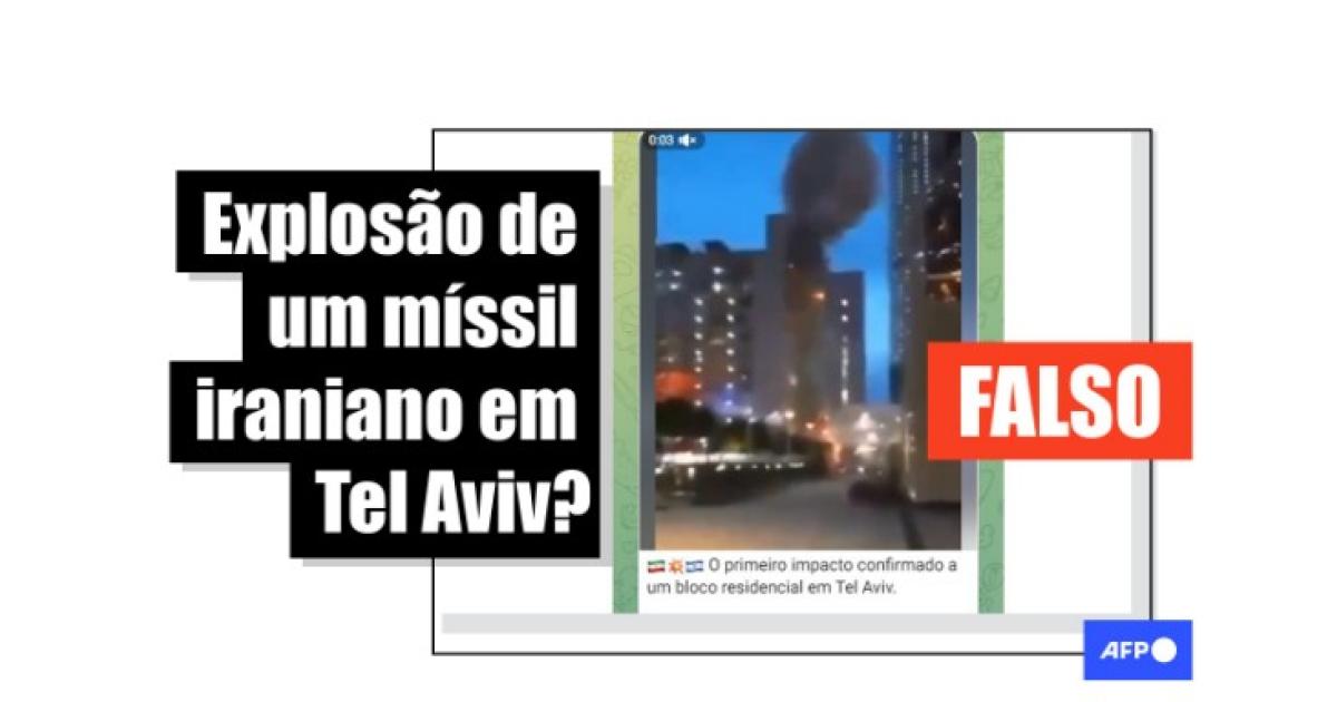 “Míssil iraniano explode prédio em Tel Aviv, Israel”, diz uma das publicações compartilhadas no Facebook, no Kwai, no Telegram e no Bluesky.