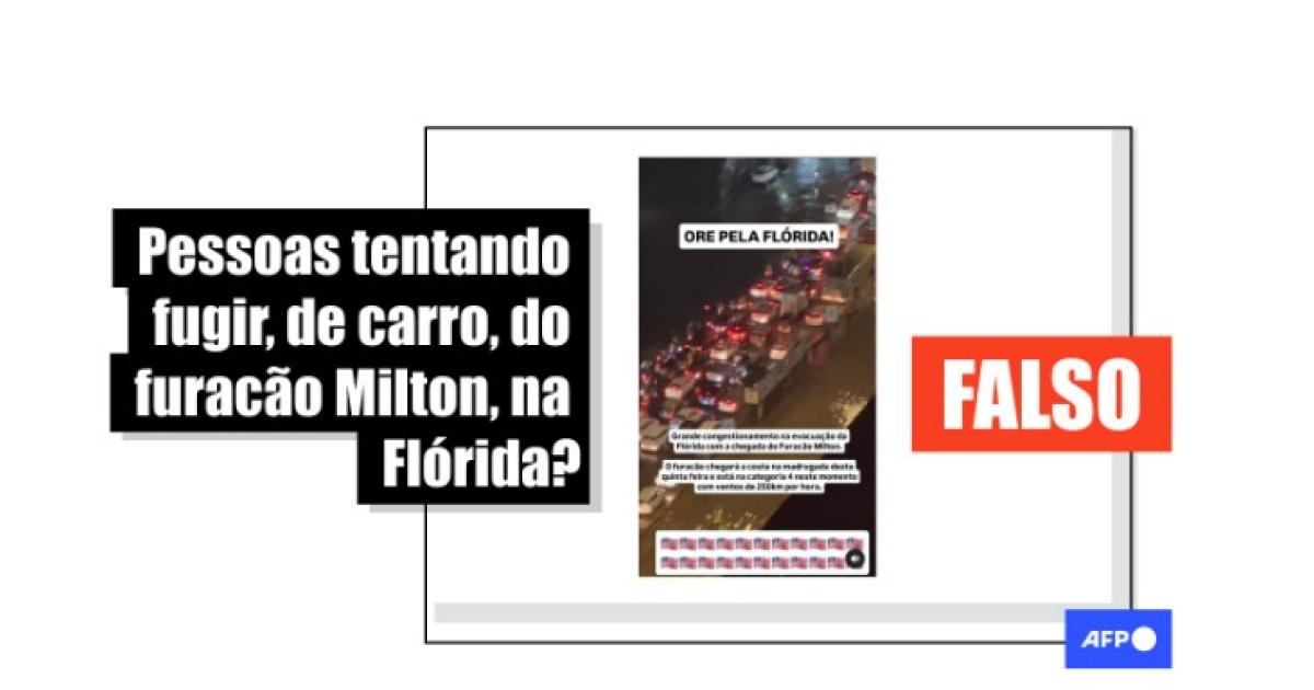“Imagens desta madrugada das pessoas tentando escapar do furacão Milton na Flórida”, diz uma das publicações compartilhadas no Facebook, no Instagram, no Telegram, no X, no Kwai e no TikTok.