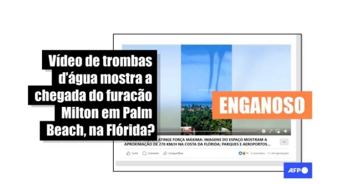 A AFP localizou o vídeo original publicado na conta de Hoadley no Facebook. “Oh, meu Deus, trombas d’água irmãs em Palm Beach. Sinto-me como se estivesse no filme Twister (...) isso é incrivelmente legal!”, diz a legenda da publicação.