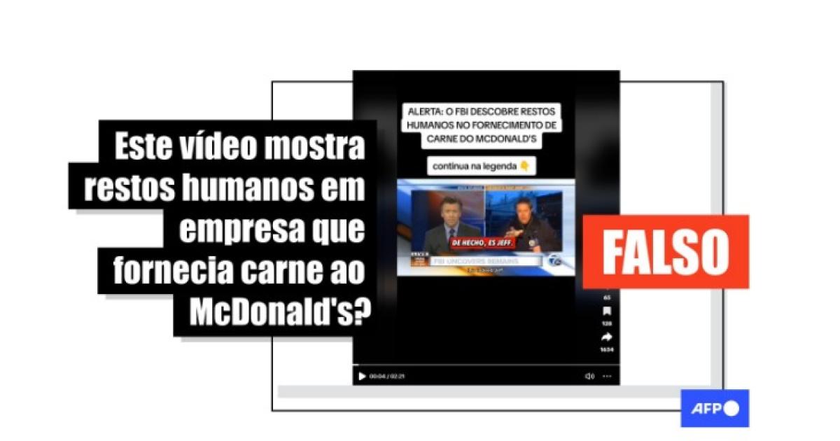 “ALERTA: FBI DESCOBRE RESTOS HUMANOS NO FORNECIMENTO DE CARNE DO MCDONALD'S? A VERDADE OBSCURA QUE VOCÊ NÃO VAI ACREDITAR” é a legenda de publicações no Facebook, no Instagram, no Telegram, no Kwai, no TikTok e no X.