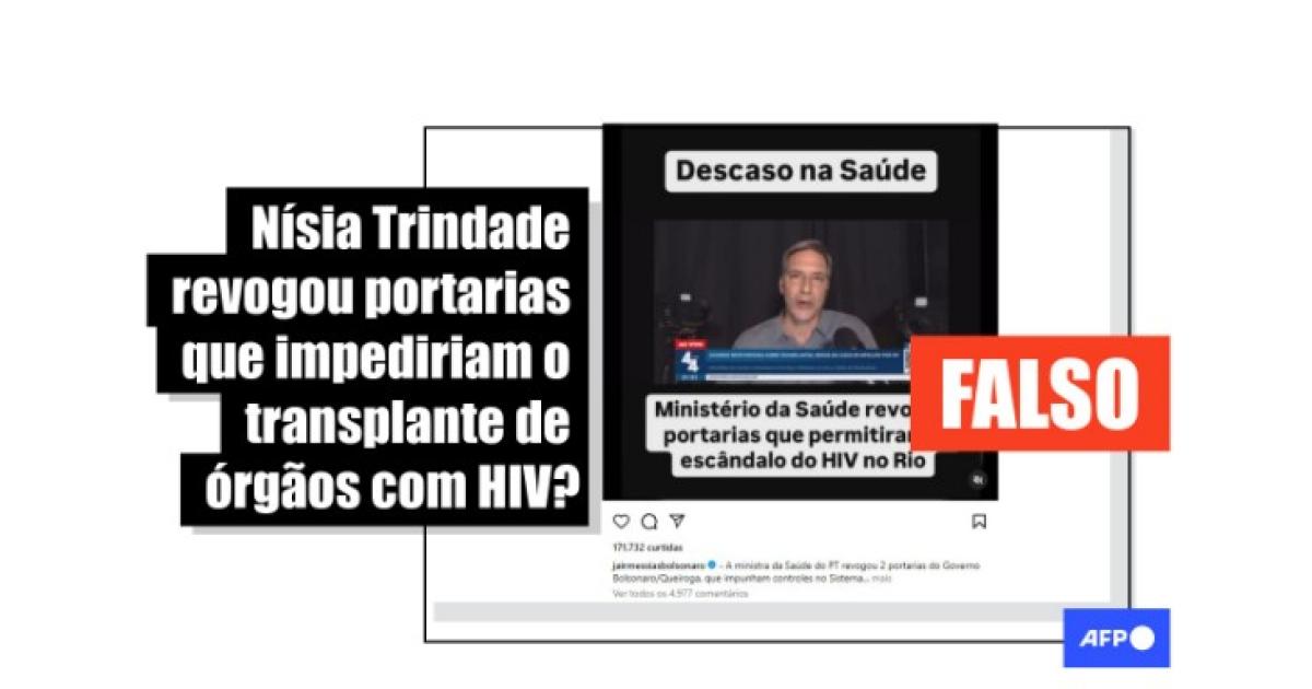 “A ministra da Saúde anunciou a revisão do sistema nacional de transplantes depois que seis pacientes no Rio de Janeiro testaram positivo para HIV (...) O médico do Conselho Federal de Medicina Francisco Cardoso publicou nas redes sociais uma decisão da ministra da Saúde que revogou duas portarias criadas no governo Bolsonaro. Essas portarias que deixaram de valer eram fundamentais para garantir a segurança e a qualidade nos transplantes.”
