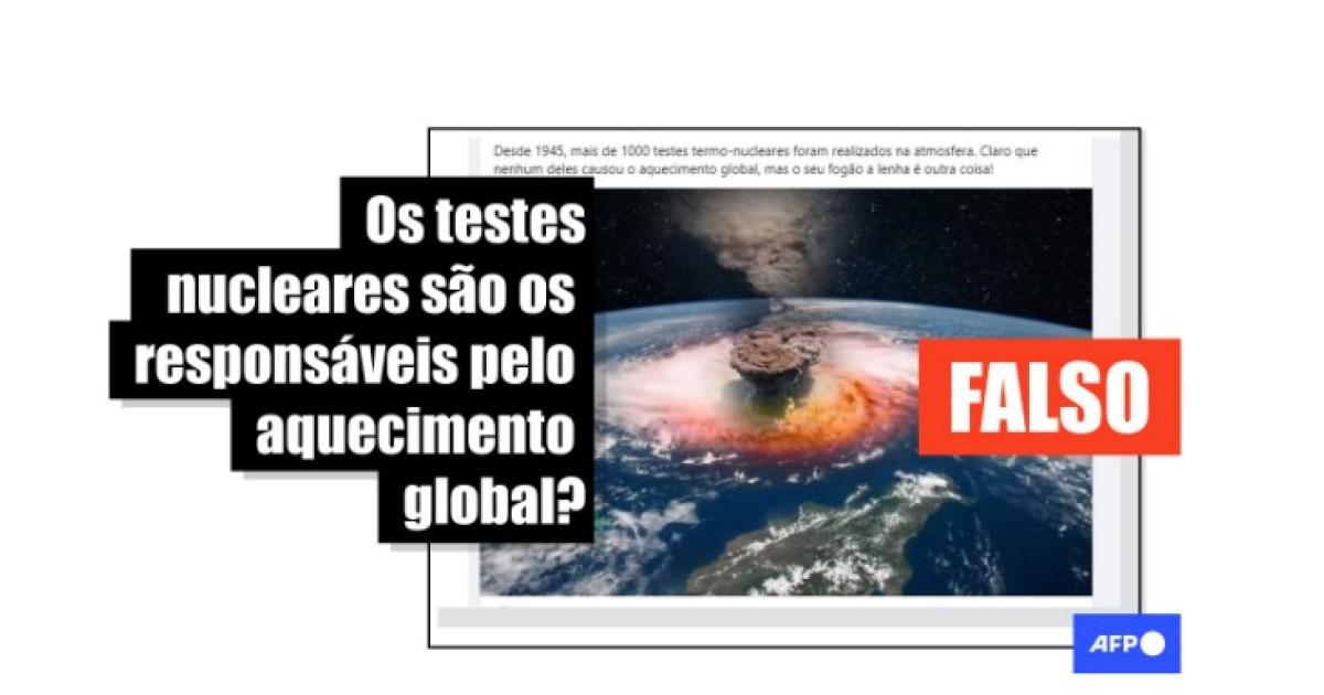“Desde 1945, mais de 1000 testes termo-nucleares foram realizados na atmosfera. Claro que nenhum deles causou o aquecimento global, mas o seu fogão a lenha é outra coisa!”, diz uma das publicações que circulam no Facebook e no Instagram.