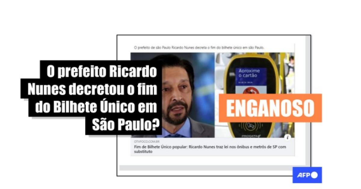 As publicações são acompanhadas pelo link ou por capturas de tela de um texto publicado no último dia 28 de outubro pelo portal TV Foco, que não está mais disponível, com o título: “Fim de Bilhete Único popular: Ricardo Nunes traz lei nos ônibus e metrôs de SP como substituto”. Em 6 de novembro, por sua vez, o site publicou uma nota explicando que a medida mencionada datava de 2021 e que o sistema seguia funcionando.