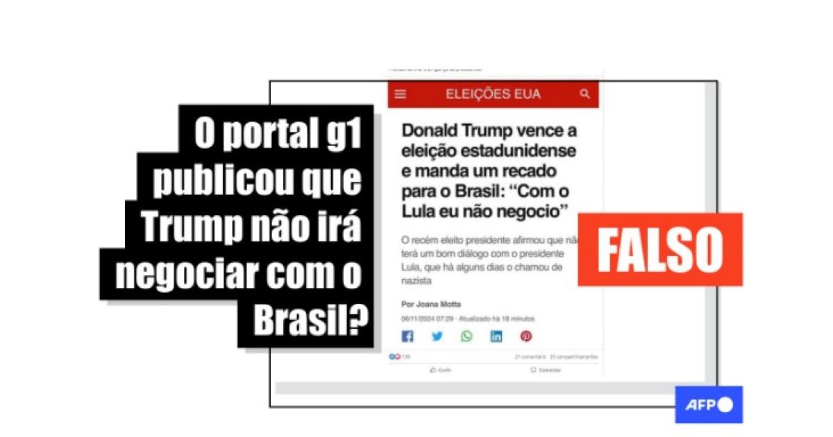 Em contato com a AFP em 7 de novembro de 2024, a assessoria do portal confirmou que “o conteúdo não foi publicado pelo g1 e não tem nenhuma profissional chamada Joana Motta na equipe”.