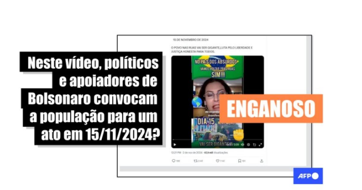 O AFP Checamos consultou as redes sociais dos protagonistas do vídeo viral (1, 2, 3, 4), e confirmou que, até a data de publicação desta verificação, nenhum deles havia convocado seus seguidores para uma manifestação em 15 de novembro de 2024.