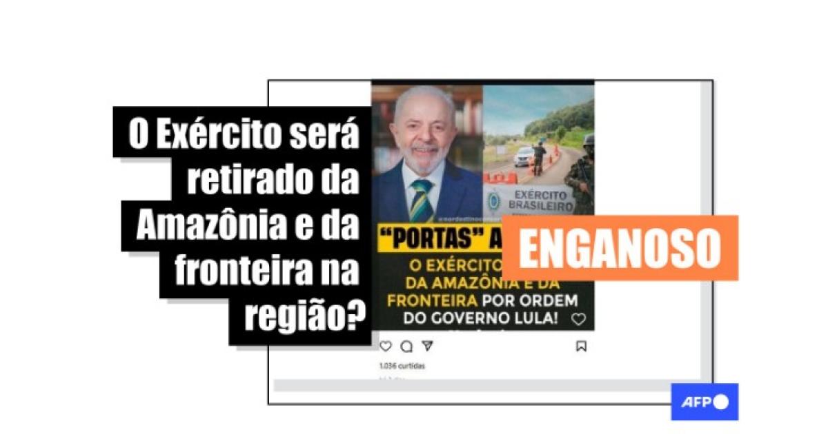 “‘Portas’ abertas! O Exército sairá da Amazônia e da fronteira por ordem do governo Lula”, diz uma imagem compartilhada no Instagram. A mesma alegação circula no Facebook, no X, no TikTok e no Kwai.