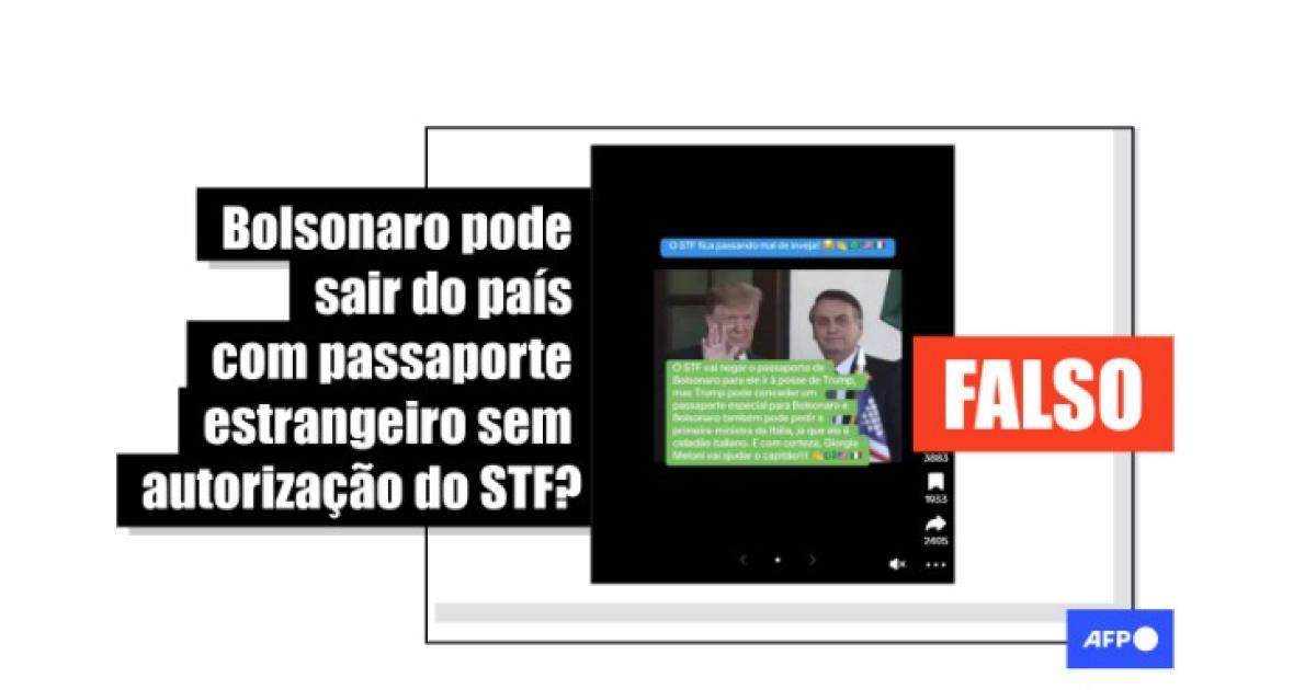 “O STF vai negar o passaporte de Bolsonaro para ele ir à posse de Trump, mas Trump pode conceder um passaporte especial para Bolsonaro e Bolsonaro também pode pedir à primeira-ministra da Itália, já que ele é cidadão italiano”, lê-se em uma publicação compartilhada no TikTok e no Facebook.