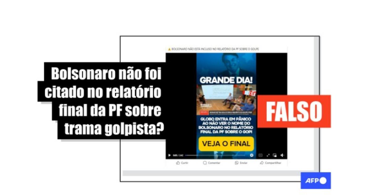 A AFP encontrou mais de 600 citações ao ex-mandatário no texto da Polícia Federal, ao contrário do que afirmam as alegações virais. Um levantamento feito pelo g1 indica também que Bolsonaro é citado 643 vezes nesse documento.