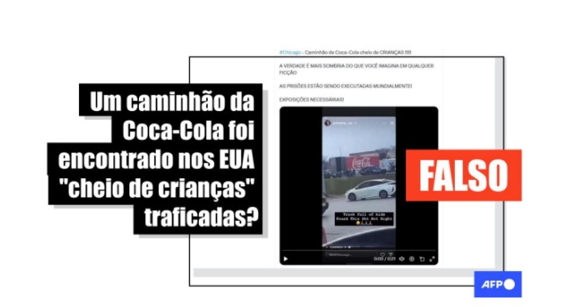 “CAMINHÃO DA COCA-COLA CHEIO DE CRIANÇAS ‘TRAFICADAS’”, diz a mensagem sobreposta ao vídeo que circula no Facebook, no Instagram, no X e no Telegram.