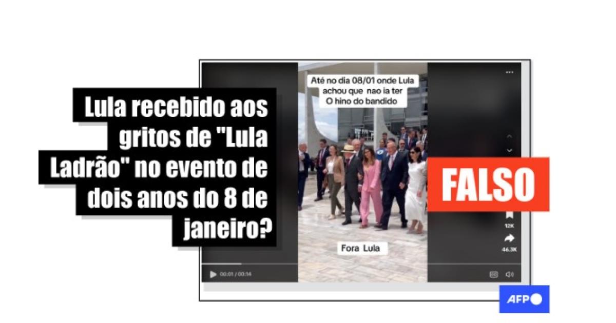 É montagem vídeo em que Lula é recebido aos gritos de "ladrão" em ato de dois anos do 8 de janeiro