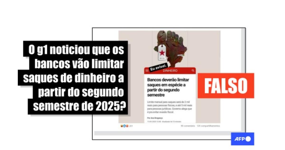 O g1 não noticiou que os bancos vão limitar os saques de dinheiro em 2025