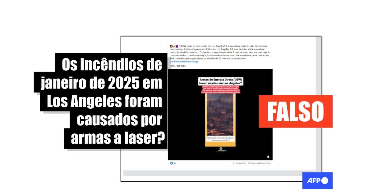 “O DEW pode ter sido usado em Los Angeles? A arma a laser pode ter sido direcionada para queimar todos os lugares escolhidos em Los Angeles, CA, mas também evitado queimar outros locais determinados... O objetivo da agenda globalista é mais uma vez destruir para depois construir melhor, transformar o que foi destruído em mais uma cidade resiliente, uma cidade que será controlada pelos globalistas, as cidades de 15 minutos ou smart cities”, afirmam publicações que circulam no Facebook, no Instagram, no X e no TikTok.