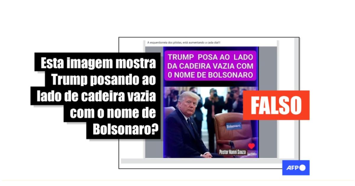Imagem de Trump ao lado de cadeira com nome de Bolsonaro foi criada com IA