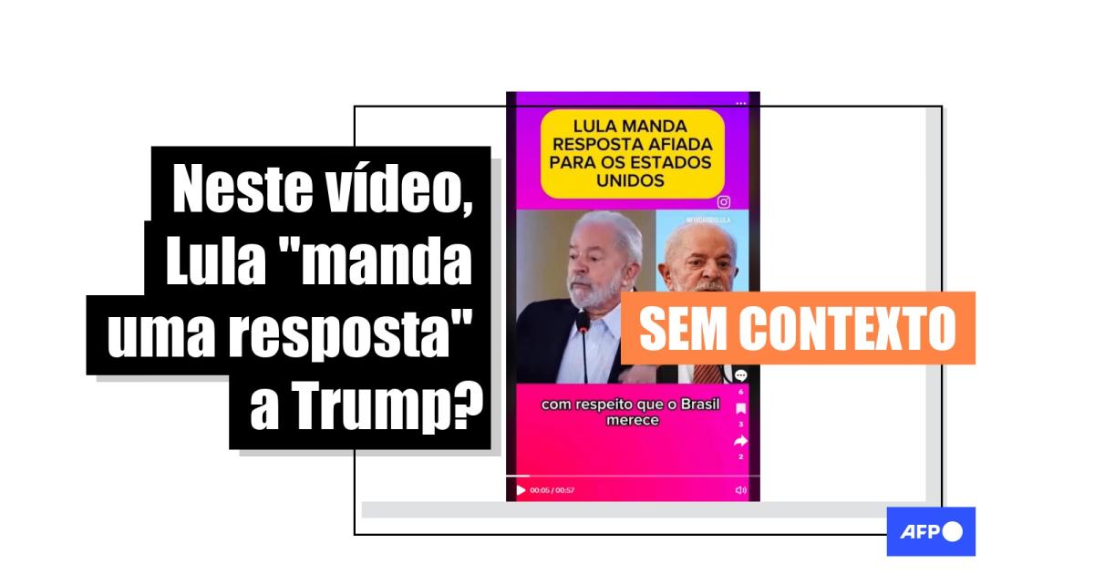 “Lula manda resposta afiada para os Estados Unidos” é a frase sobreposta ao vídeo compartilhado no Facebook, no TikTok e no YouTube. “Resposta do presidente Lula ao neonazista Trump” alega uma publicação no Instagram.