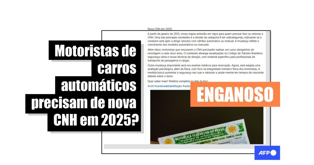 Consultada pelo AFP Checamos, a assessoria de comunicação do Ministério dos Transportes informou em 30 de janeiro de 2025 que a pasta “reafirma que a suposta nova categoria de CNH exclusiva para carros automáticos é uma proposta em discussão no Legislativo. Portanto, não existe qualquer decisão que tenha implicado em atualização da norma vigente”.