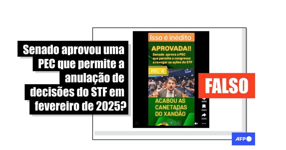 "APROVADA!! Senado aprova a PEC que permite o congresso a revogar as ações do STF. PEC 8 ACABOU AS CANETADAS DO XANDÃO", lê-se no texto sobreposto a um vídeo que circula no Instagram, no Facebook e no TikTok.