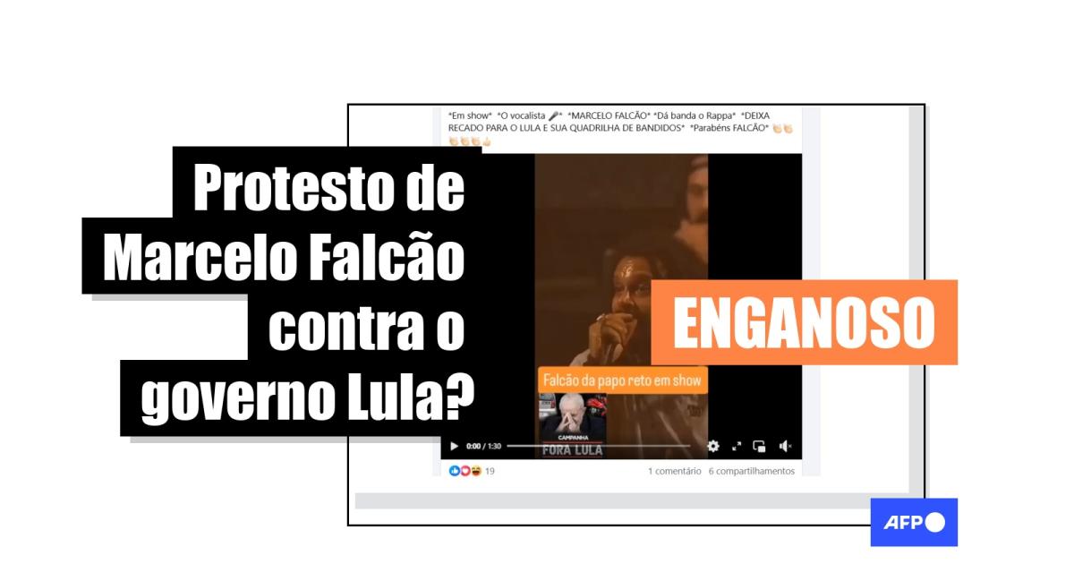 “*Em show* *O vocalista * *MARCELO FALCÃO* *Dá banda o Rappa* *DEIXA RECADO PARA O LULA E SUA QUADRILHA DE BANDIDOS* *Parabéns FALCÃO*”, diz uma das publicações que compartilham a sequência no Facebook, no Instagram e no X.