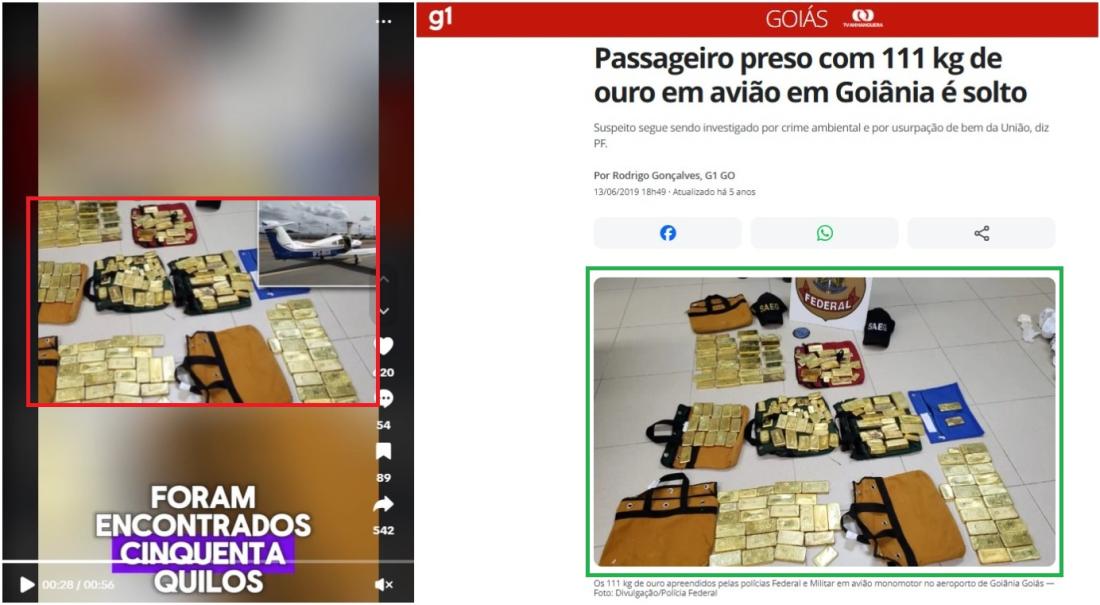 A imagem das barras de ouro foi localizada em uma matéria do g1, publicada em junho de 2019, sobre um avião que foi apreendido em Goiânia com 111 kg de ouro ilegal.
