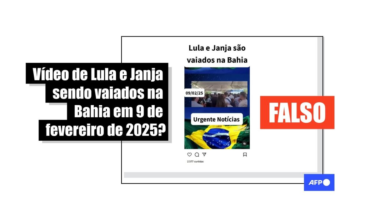 “Lula e Janja são vaiados na Bahia 09/02/25”, lê-se no texto sobreposto a um vídeo que circula no Instagram, no Kwai e no Facebook.