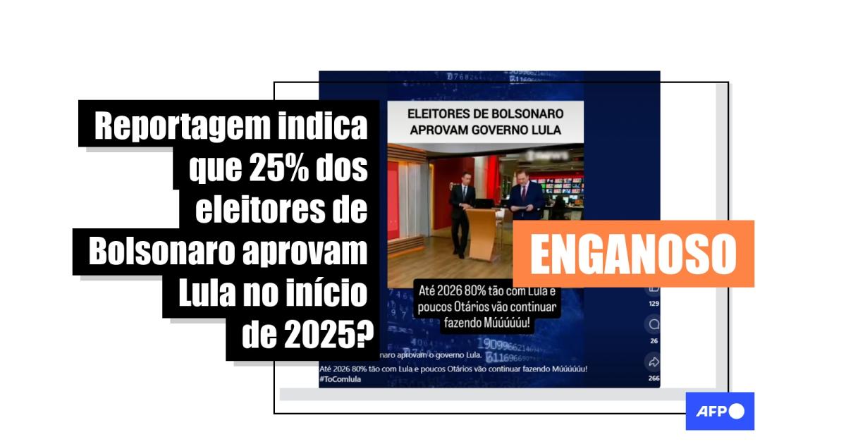 Na ocasião, os jornalistas comentavam um dado da pesquisa Quaest, divulgada no dia 16 do mesmo mês, que apurou a aprovação do trabalho do presidente Lula entre diferentes grupos populacionais. Entre aqueles que declararam ter votado em Jair Bolsonaro no segundo turno das eleições de 2022, a porcentagem de aprovação era de 25%, como citado na reportagem.