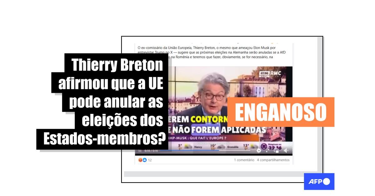 Mas não é verdade que Breton tenha afirmado, na entrevista viralizada, que a União Europeia poderia anular eleições na Alemanha, nem que o bloco tenha tomado essa medida na Romênia.