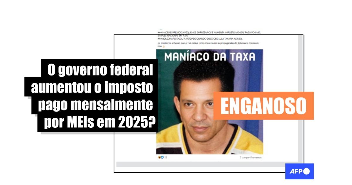 Procurada pelo AFP Checamos, a assessoria de comunicação do Ministério da Fazenda também afirmou que “desde 2011 (...), a alíquota de contribuição previdenciária do MEI foi reduzida de 11% para 5% do salário mínimo, tornando o regime mais acessível para pequenos empreendedores. Essa alíquota só pode ser alterada pelo Congresso Nacional”.