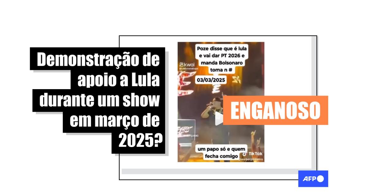 “Eu também sou Lula . O BRASIL DECENTE ESTÁ COM LULA”, diz uma das publicações que circulam no Instagram, no Facebook e no TikTok. O vídeo ainda contém, sobreposta, a mensagem: “Poze disse que é Lula e vai dar PT 2026” e a data “03/03/2025”.