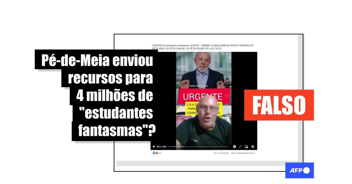 “4 milhões de estudantes fantasmas nesse projeto. Cadê a Polícia Federal? Cadê o STF? O pior é que o MEC diz que não sabe onde está esses 4 milhões de estudantes fantasmas que estão recebendo o Pé-de-Meia”, diz um homem em um vídeo publicado no Telegram e no Facebook. Alegações semelhantes também são compartilhadas no Instagram, no TikTok, no Kwai e no YouTube.