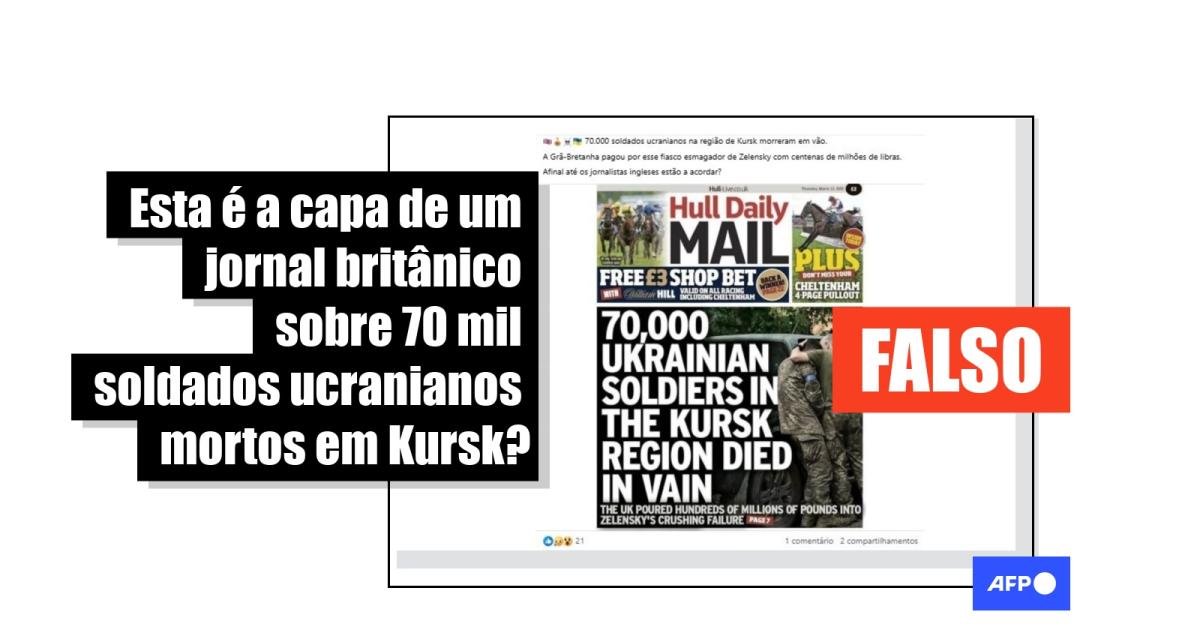 Capa falsa de jornal sobre 70 mil soldados ucranianos mortos em Kursk circula nas redes