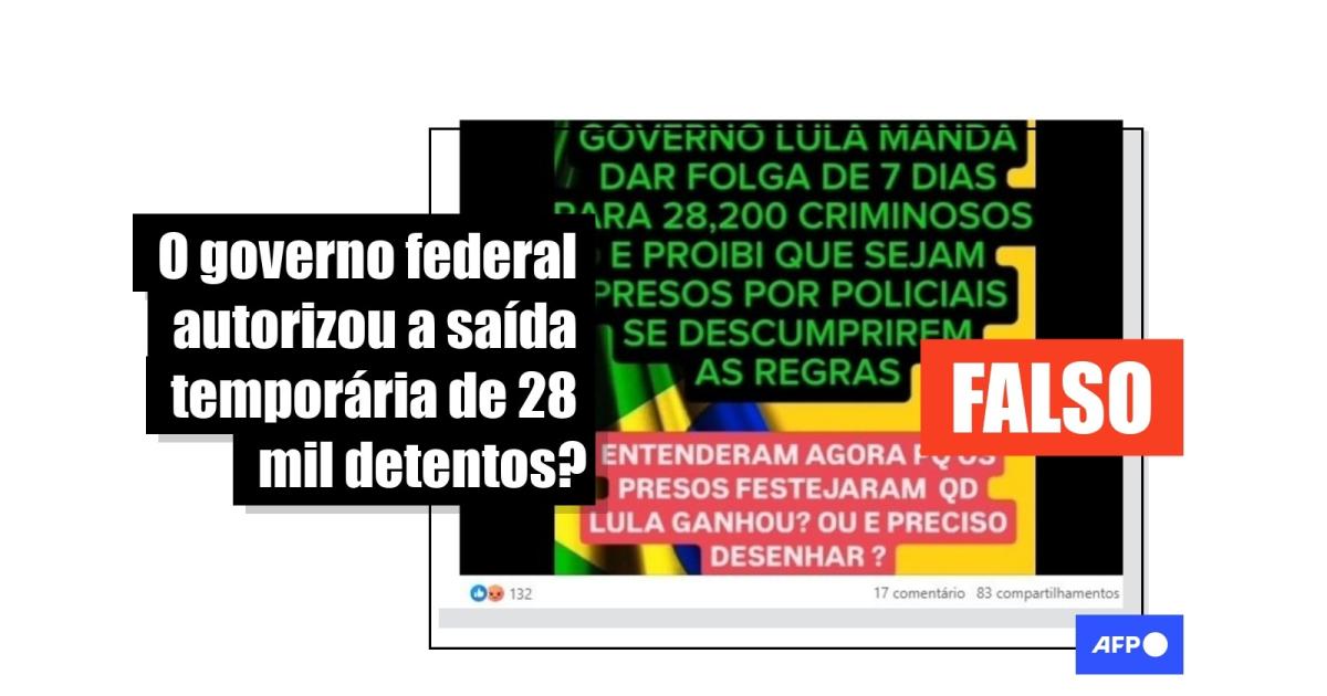 O conteúdo viral também afirma que o governo federal teria proibido que os detentos “sejam presos por policiais se descumprirem as regras” da saída temporária.