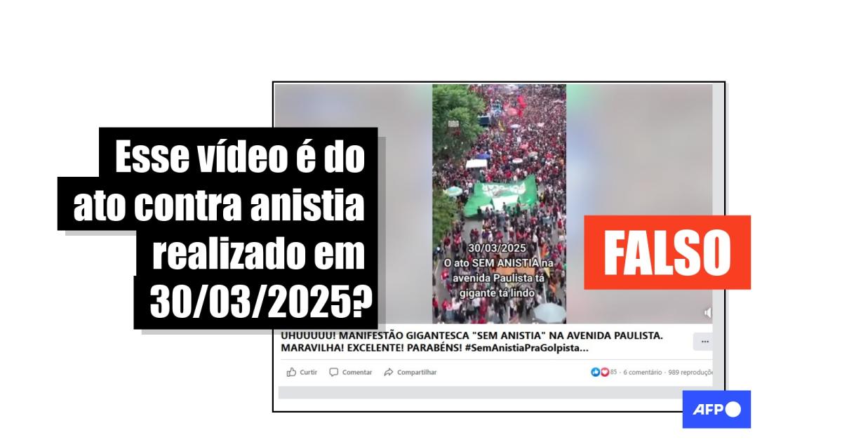 “30/03/2025 O ato SEM ANISTIA na avenida Paulista tá gigante tá lindo”, diz uma legenda sobreposta a um vídeo que circula no Instagram, no Facebook, no TikTok e no Kwai.