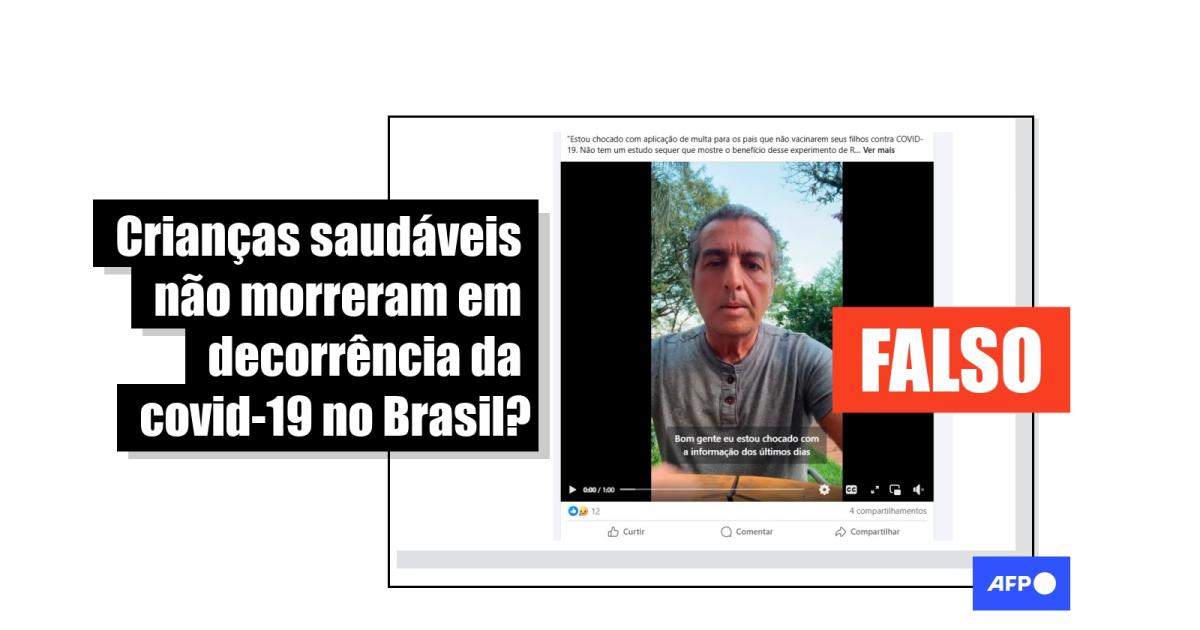 Na gravação viral, o médico Roberto Zeballos, que já difundiu alegações verificadas anteriormente pela AFP, diz estar “chocado” com a decisão que prevê multa para pais que não vacinarem seus filhos. “Primeiro, a criança nunca foi alvo, na Alemanha não morreu nenhuma criança de covid, aqui no Brasil é mínima a quantidade de crianças que morreram, mas a gente não sabe se foi de covid, porque as crianças saudáveis, eu vi, não tinha ninguém saudável que tinha problema com a covid”, afirma em um trecho do vídeo viral.