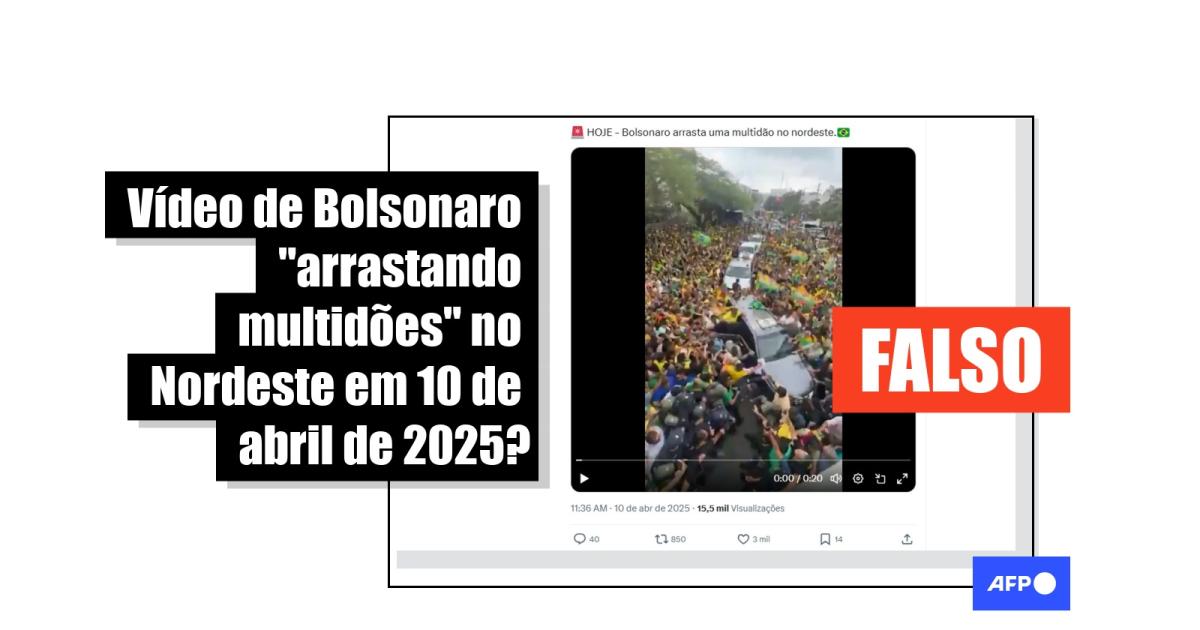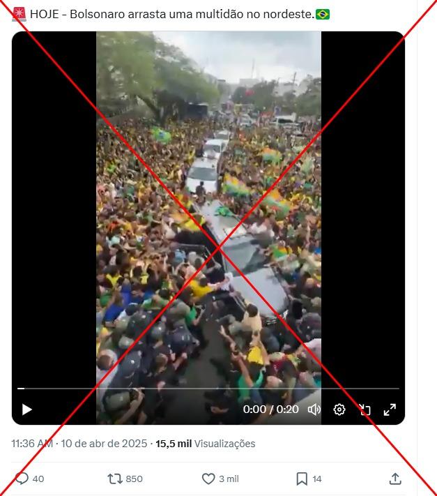 “Bolsonaro no Nordeste, 10 de Abril de 2025!”, diz uma das publicações que compartilham a sequência viral no Facebook, no Kwai e no X. Algumas postagens indicam ainda que o registro teria ocorrido na mesma data na Paraíba ou no Rio Grande do Norte.