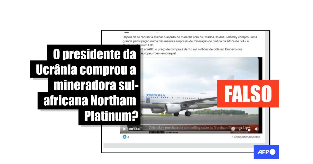 Sherilee Lakmidas, porta-voz da Northam Platinum, afirmou à AFP em 7 de abril de 2025: “Todos os artigos, vídeos e publicações em redes sociais que afirmam que o presidente ucraniano, Volodimir Zelensky, está adquirindo uma participação na Northam Platinum são notícias falsas”.