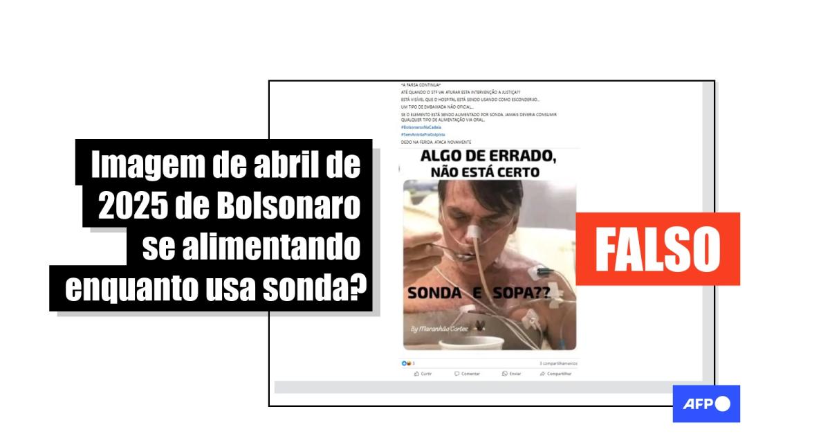 “A FARSA CONTINUA ATÉ QUANDO O STF VAI ATURAR ESTA OBSTRUÇÃO A JUSTIÇA?? ESTÁ VISÍVEL QUE O HOSPITAL ESTÁ SENDO USANDO COMO ESCONDERIJO… UM TIPO DE EMBAIXADA NÃO OFICIAL… SE O ELEMENTO ESTÁ SENDO ALIMENTADO POR SONDA, JAMAIS DEVERIA CONSUMIR QUALQUER TIPO DE ALIMENTAÇÃO VIA ORAL..”, diz a legenda de publicações no Instagram e no Facebook, que circulam com uma imagem de Bolsonaro em uma cama hospitalar, com uma sonda e se alimentando com uma colher.