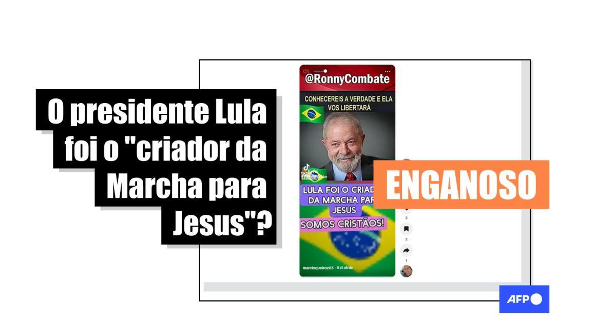 “Lula foi o criador da Marcha para Jesus” é a frase sobreposta ao vídeo compartilhado no Facebook, no Instagram e no TikTok. A gravação circula nas redes sociais desde 2022 no Kwai.