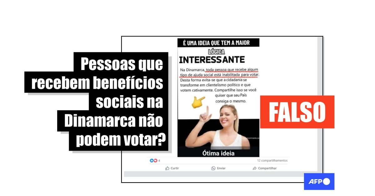 “Na Dinamarca, toda pessoa que recebe algum tipo de ajuda social está inabilitada para votar. Desta forma evita-se que a cidadania se transforme em clientelismo político e que votem cativamente”, lê-se nas publicações no Instagram, no Facebook, no TikTok, no Threads e no X.