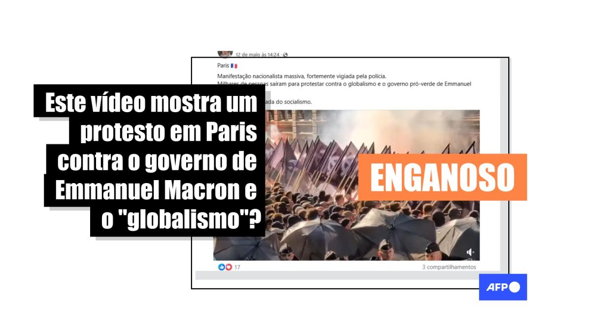 Filmagem de mobilização em Paris em memória de militante do C9M não mostra protesto contra Macron