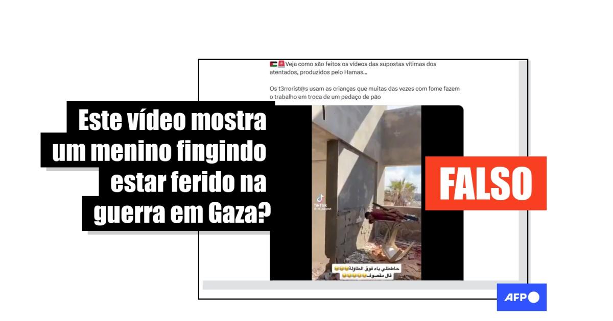 “Veja como são feitos os vídeos das supostas vítimas dos atentados, produzidos pelo Hamas... Os t3rrorist@s usam as crianças que muitas das vezes com fome fazem o trabalho em troca de um pedaço de pão”, diz uma das publicações compartilhadas no Facebook, no Instagram, no X e no Gettr.