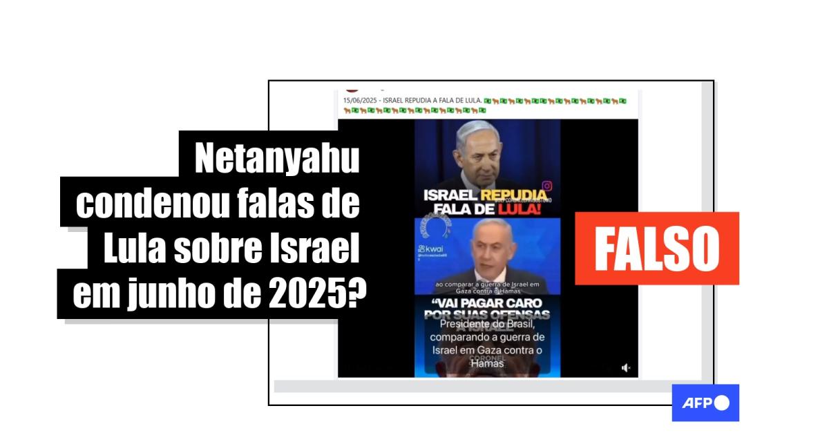 “PRONUNCIAMENTO DO PRIMEIRO MINISTRO DE ISRAEL BENJAMIN NETANYAHU NESTA NOITE DE SE SEXTA FEIRA: REPUDIA A FALA DO PRESIDENTE LULA! VAI PAGAR CARO POR SUAS OFENSAS A ISRAEL”, diz a legenda de publicações no Facebook e no Instagram que atribuem a fala a uma suposta declaração feita em 13 de junho de 2025.