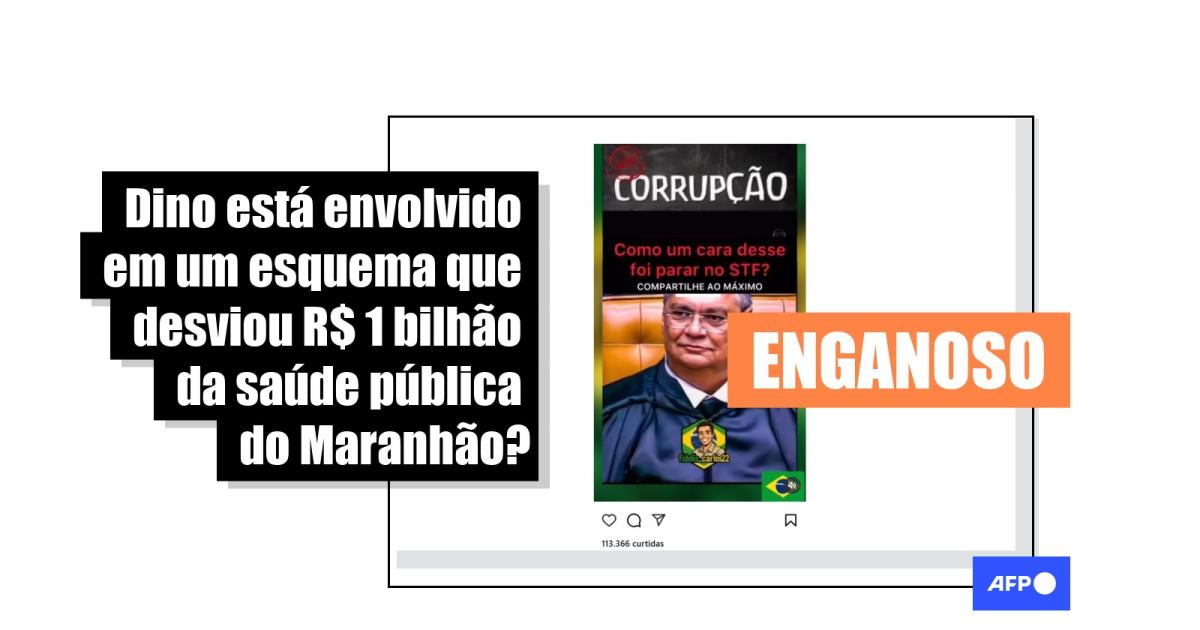 A sequência exibe uma foto do ministro Flávio Dino abaixo de um trecho de 2 minutos e 15 segundos de uma reportagem do programa Fantástico, da Rede Globo, sobre um desvio de R$ 1 bilhão da saúde pública do Maranhão, que ocorreu durante os mandatos de Roseana Sarney (MBD) e do próprio Dino (então PCdoB) no governo do estado.
