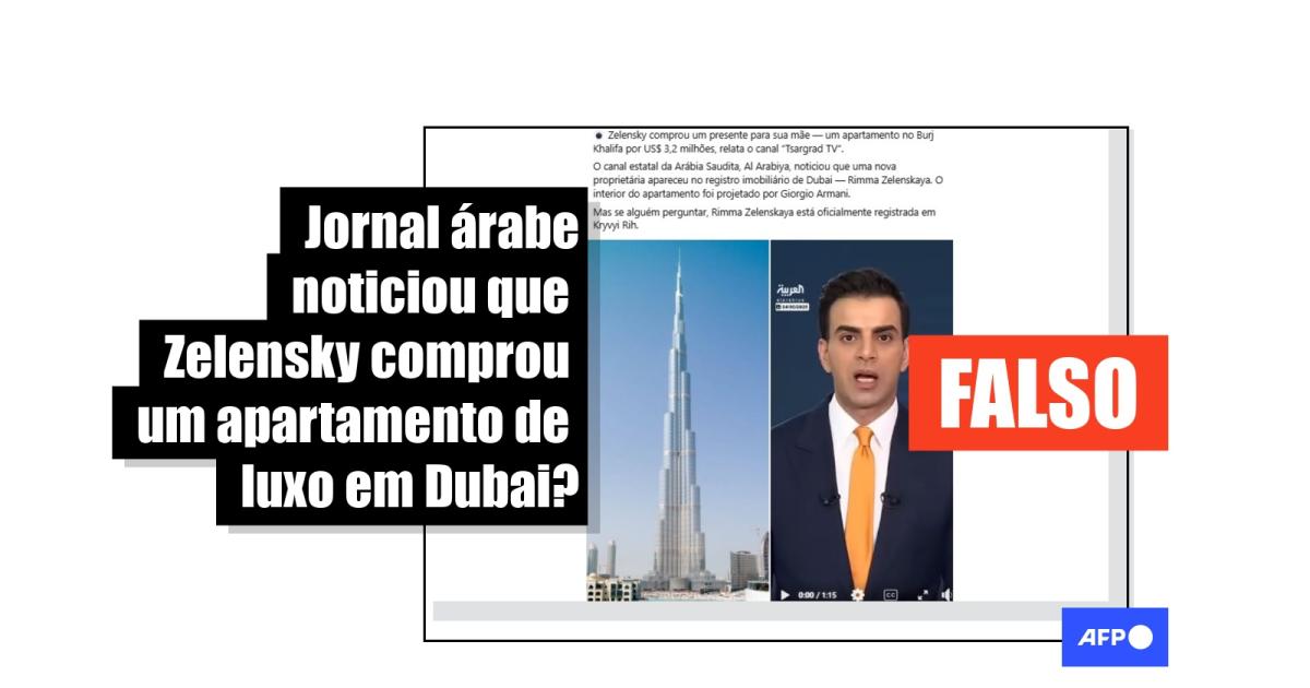 Jornal saudita não noticiou que Zelensky teria comprado apartamento para a mãe no Burj Khalifa, em Dubai