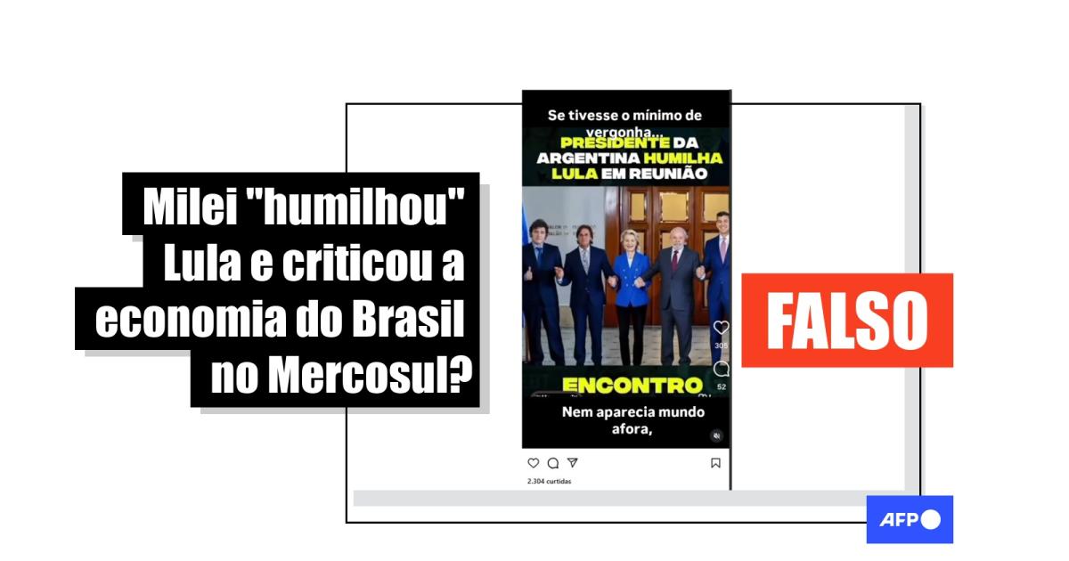 É falso que Milei tenha criticado a economia brasileira e “humilhado” Lula em reunião do Mercosul