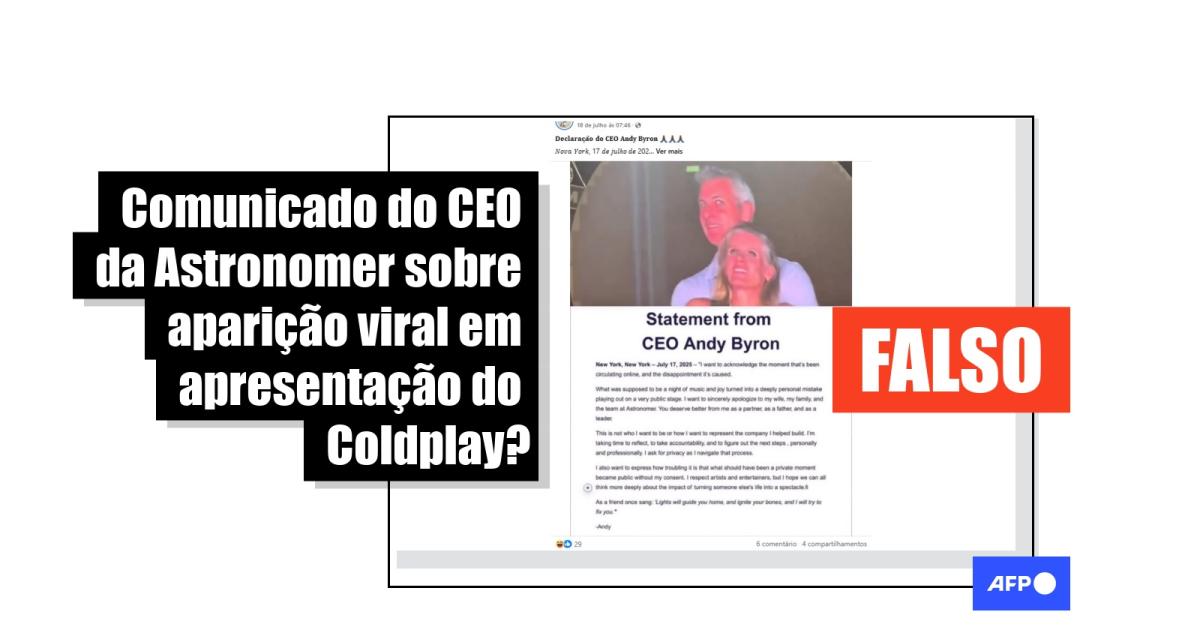 Usuários compartilham falso pronunciamento de CEO da Astronomer após vídeo viral em show do Coldplay