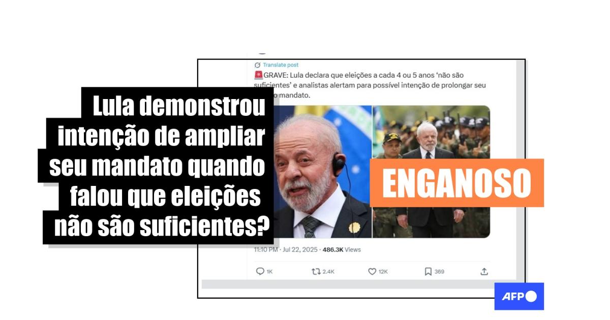 “GRAVE: Lula declara que eleições a cada 4 ou 5 anos ‘não são suficientes’ e analistas alertam para possível intenção de prolongar seu próprio mandato”, diz uma das publicações compartilhadas no Facebook. Conteúdo semelhante circula também no Instagram, no TikTok e no X.