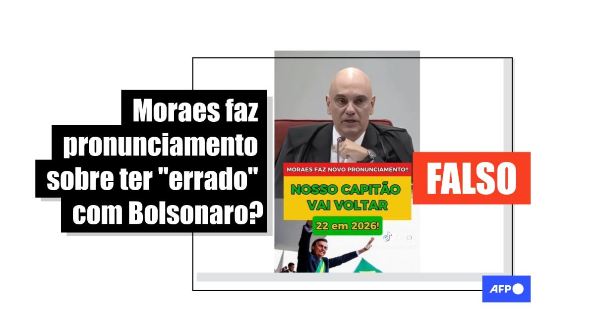 No conteúdo viralizado, o ministro Alexandre de Moraes, vestindo um terno preto e gravata bege, parece dizer em um microfone: “Hoje eu preciso falar com o povo brasileiro de coração aberto. Eu reconheço que errei em algumas decisões do passado. Errei com Jair Bolsonaro e errei com muitos de vocês”.