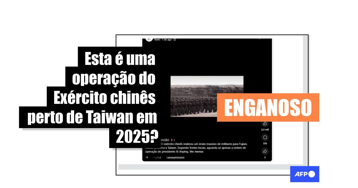 “O exército chinês realizou um envio massivo de militares para Fujian, cidade próxima a Taiwan. Segundo fontes locais, aguarda-se apenas a ordem de operação do presidente Xi Jinping”, afirmam publicações compartilhadas no Facebook, no Instagram, no X e no TikTok.