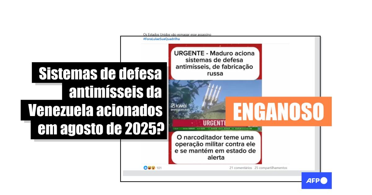 A alegação é compartilhada junto a imagens de uma reportagem do veículo argentino La Nación Más, na qual se ouve, em espanhol: “Veja as primeiras imagens da decisão do regime de Nicolás Maduro de implantar o sistema de mísseis antiaéreos na Venezuela”.